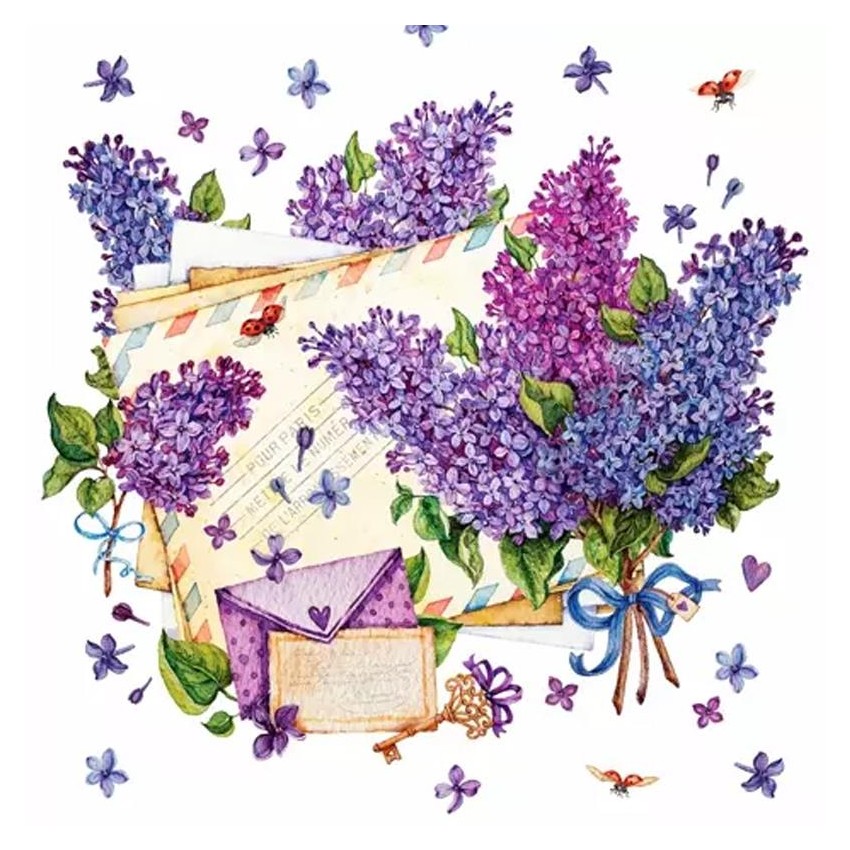 EMB. 20 GUARDANAPOS 33x33CM CARTAS E LILAS 389158