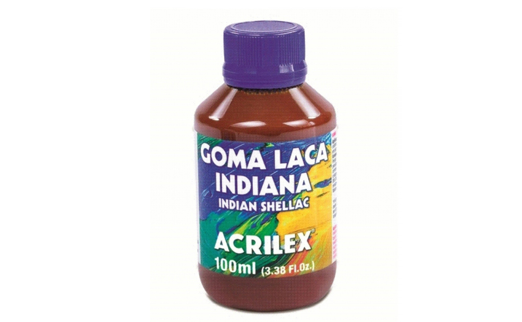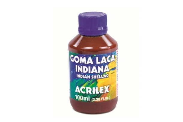 Goma laca Acrilex para impermeabilizar materiais porosos e absorventes como papel, madeira, cerâmica e gesso para posterior pintura. Pode ser utilizada como verniz de acabamento em peças decorativas e para fixação de purpurinas e glitters. Sua principal característica é sua total transparência. Não altera a cor natural das pinturas.