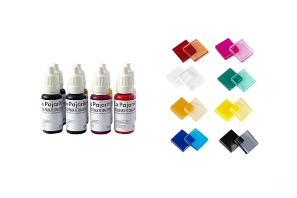 Kit de 8 pigmentos de 15ml para resina epoxi. Os pigmentos permitem criar cores vibrantes nos seus projetos de resina epoxi. Obtenha um acabamento translucido ou opaco consoante a quantidade adicionada ou crie as suas proprias cores misturando os pigmentos. Sortido de 8 cores pigmentares : ocre, branco, magenta, vermelho, amarelo, azul, verde e preto. Acabamento translucido ou opaco. Basta uma gota para dar cor aos seus projetos .