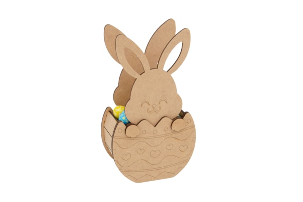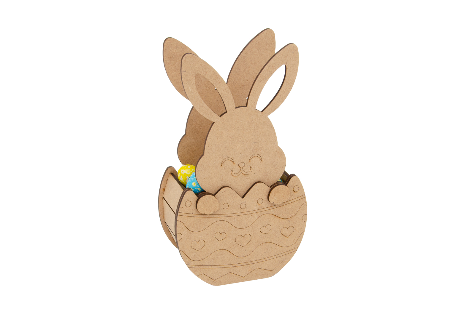 Este adorável mini cesto em madeira é perfeito para a Páscoa, com a frente e a parte de trás decoradas com um coelhinho encantador. Ideal para preencher com amêndoas, chocolates ou outros doces e oferecer como presente delicado ou para decorar a mesa da Páscoa.