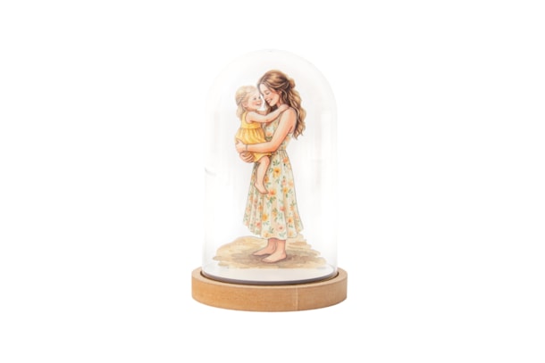 Eternize a ligação entre mãe e filha com esta campânula em MDF, que apresenta uma ilustração em impressão UV de alta definição. Com um design elegante e acabamento cuidado, é a escolha ideal para o Dia da Mãe: uma peça decorativa que celebra este vínculo especial com toda a emoção e delicadeza.