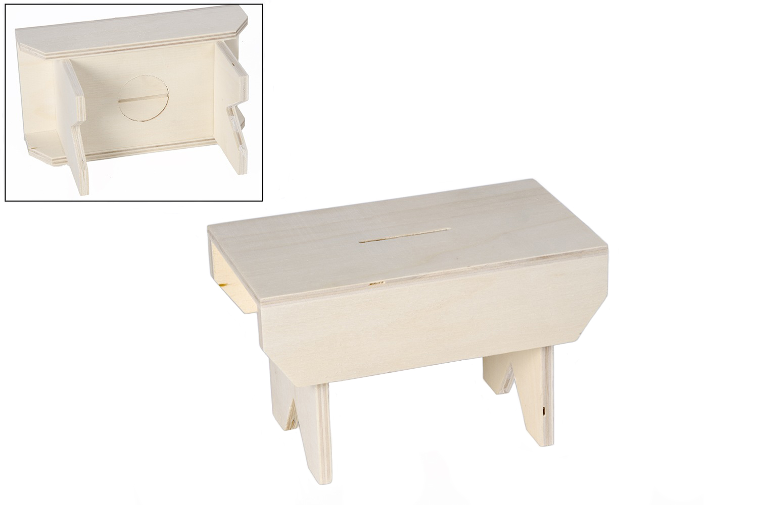 Banco mealheiro. Decore-o a seu gosto e ponha lá dentro as poupanças do seu menino/a. Medidas: 18x9.5x12cm.