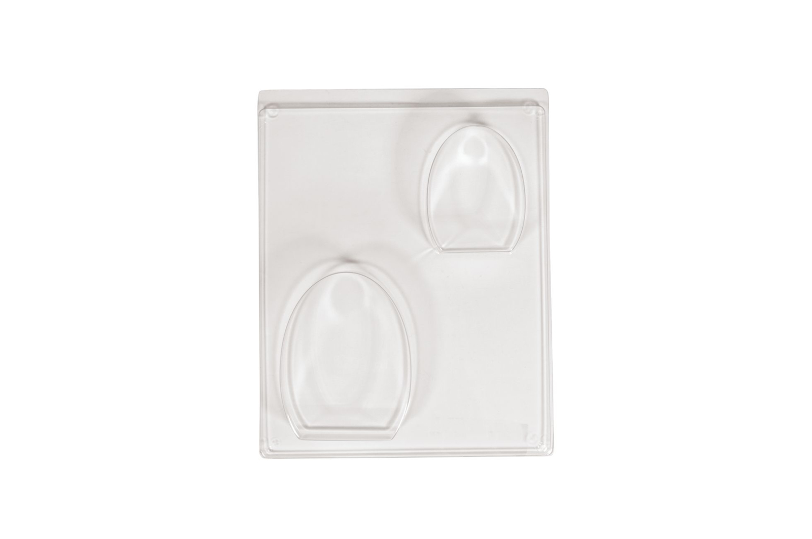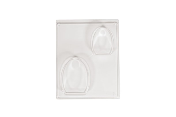 Molde de fundição PET 2 motivos, ovos: ovo grande 8,3 x 10,5 cm, ovo pequeno 6,3 x 8 cm, profundidade até 3 cm.