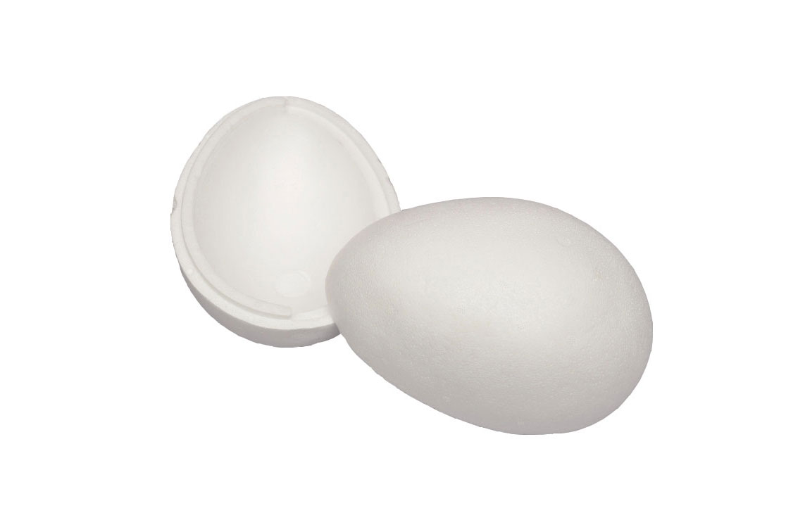 Ovo de esferovite em 2 metades, ideal para ser decorado com tinta acrílica, papel decorativo, guardanapo, tecido, etc. Muito utilizado como decoração de páscoa. Quantidade minima de venda é 1un. Distribuído por LG Arts & Crafts