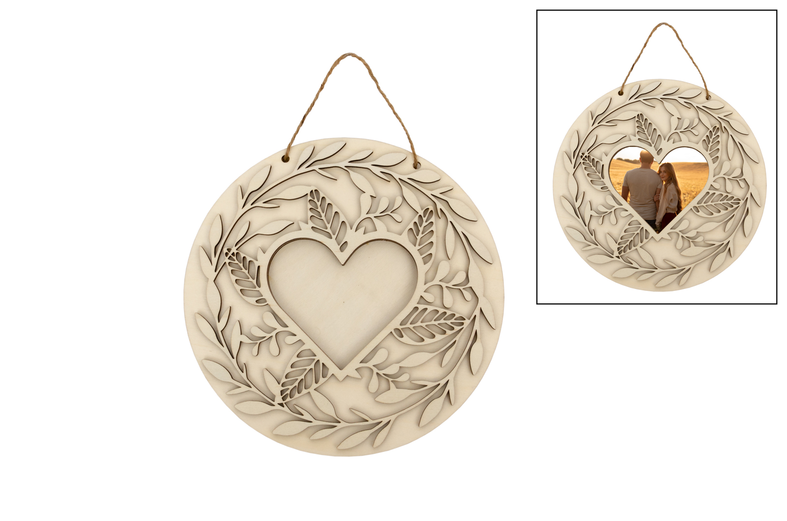 P.FOTO CORAÇÃO COM FOLHAGEM D.21X0.4CM CHOUPO