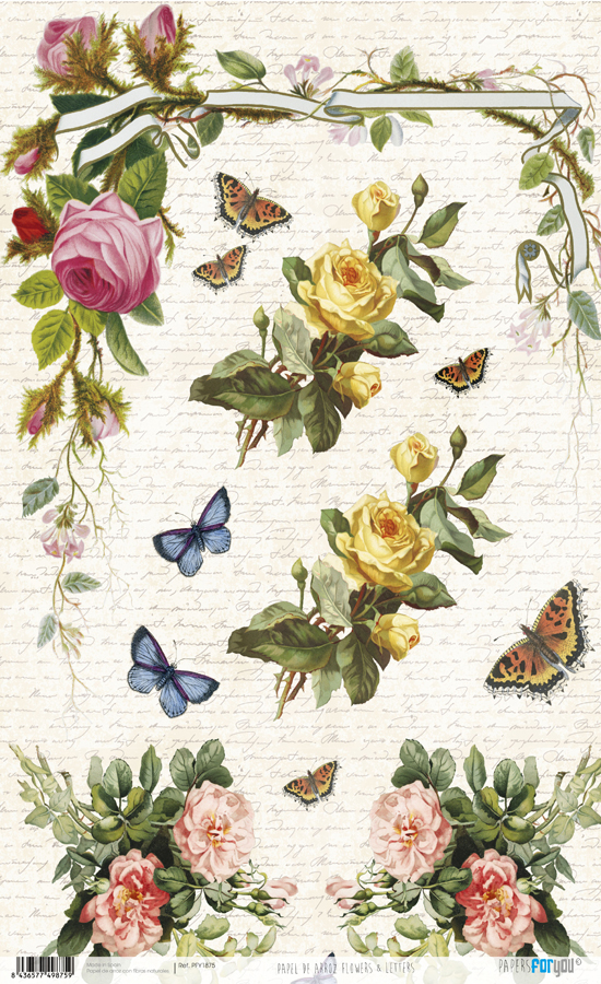 PAPEL ARROZ 54X33CM FLOWERS AND LETTERS PFY-1875