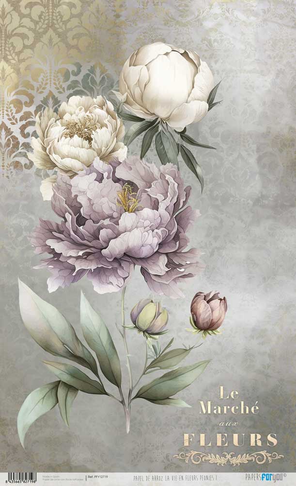 PAPEL ARROZ 54X33CM LA VIE EN FLEURS PEONIES I PFY-12719