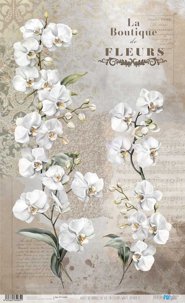 PAPEL ARROZ 54X33CM LA VIE EN FLEURS WHITE ORCHID PFY-15085