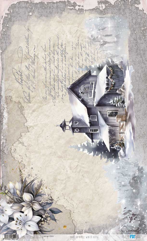 PAPEL ARROZ 54X33CM SNOW ON THE FOREST HOUSE PFY-12416