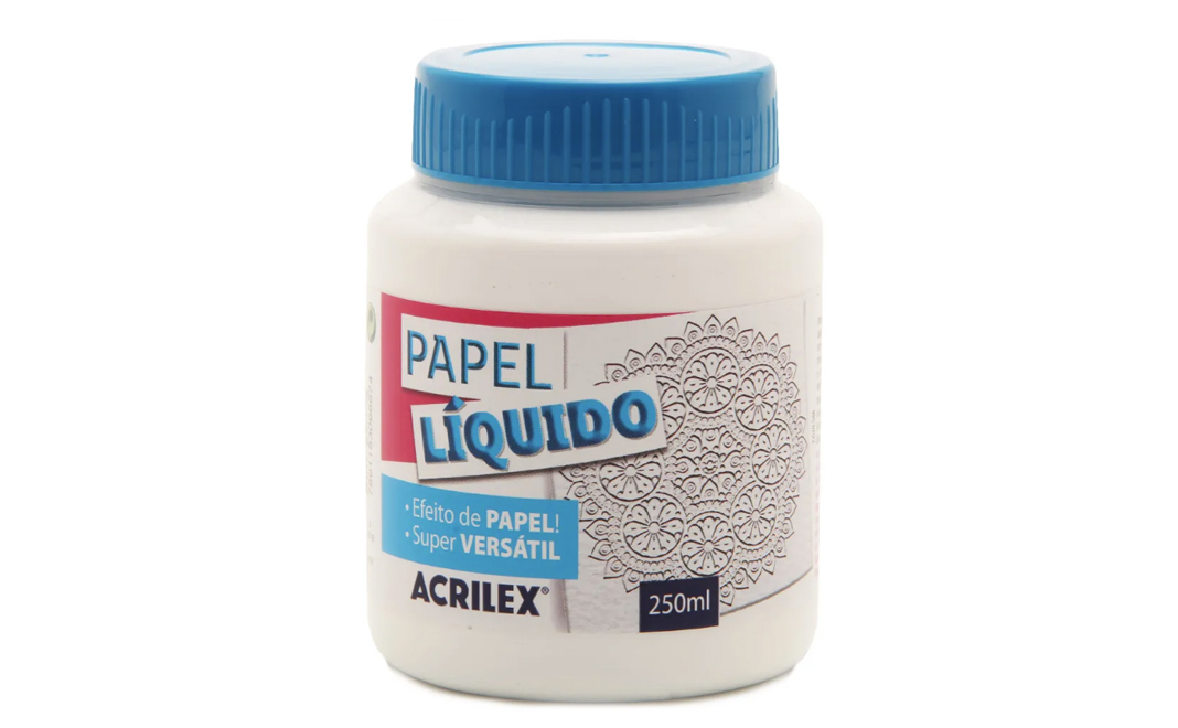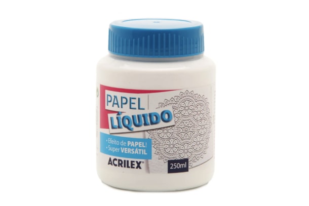 PAPEL LIQUIDO 250ML ACRILEX. Antes de usar, misturar ligeiramente com um pincel ou espatula. Aplicar uma capa uniforme (evitar as camadas finas) . Pode utilizar sobre moldes (superficies flexiveis e nao porosas) ou criar com as mãos a forma desejada. Deixar secar 24horas para retirar o molde (dependento da grossura) . Uma vez seco, pode cortar com uma tesoura , pintar com tintas acrilicas ou colar sobre alguma superficie. Efeito papel. Muito versatil.