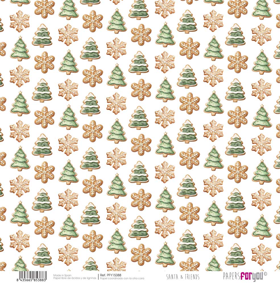 PAPEL SCRAP 30.5X31.8CM SANTA & FRIENDS PFY-15388 PAPERS FOR YOU - gramagem 180 grs. Papel dupla face, livre de acidos de ligninas.