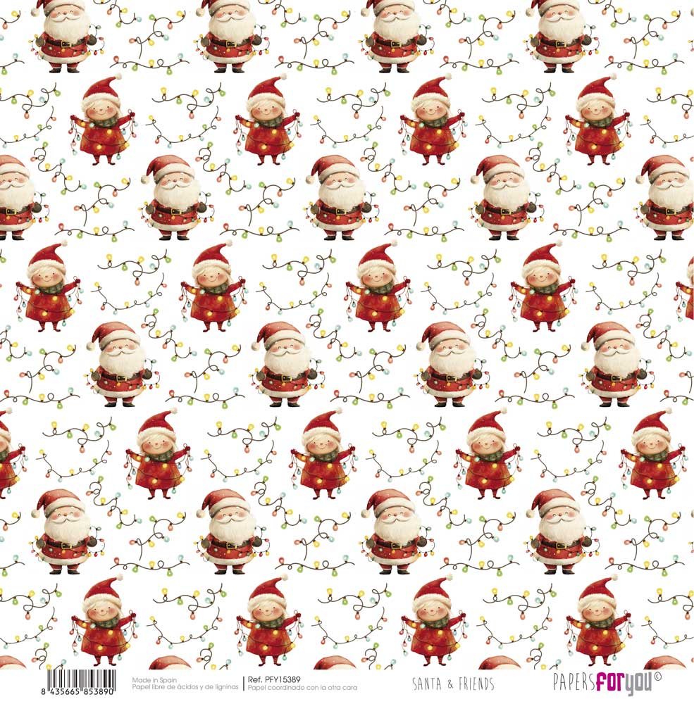 PAPEL SCRAP 30.5X31.8CM SANTA & FRIENDS PFY-15389 PAPERS FOR YOU - gramagem 180 grs. Papel dupla face, livre de acidos de ligninas.