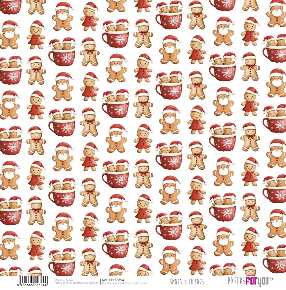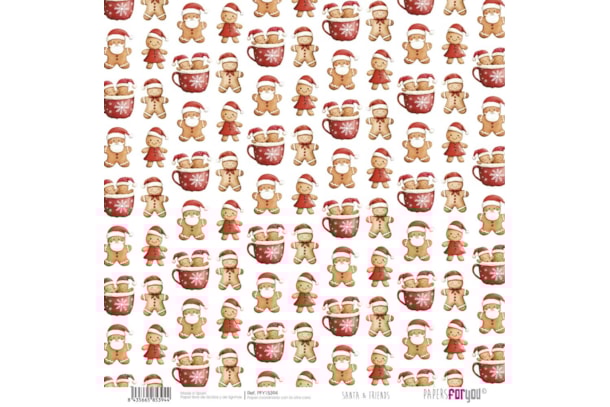 PAPEL SCRAP 30.5X31.8CM SANTA & FRIENDS PFY-15394 PAPERS FOR YOU - gramagem 180 grs. Papel dupla face, livre de acidos de ligninas.