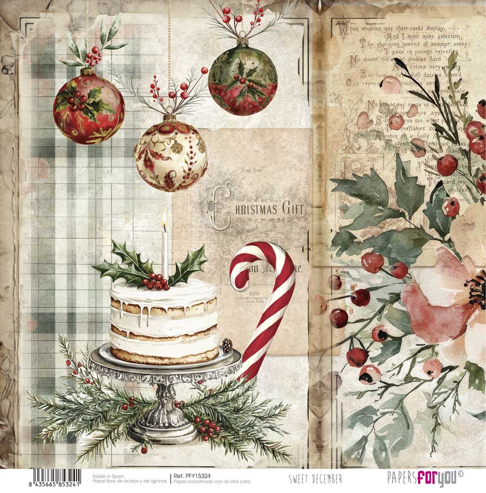 PAPEL SCRAP 30.5X31.8CM SWEET DECEMBER PFY-15324 PAPERS FOR YOU - gramagem 180 grs. Papel dupla face, livre de acidos de ligninas.