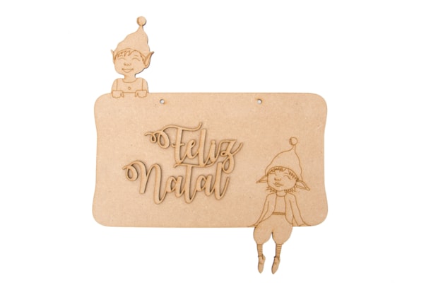 PLACA DUENDES FELIZ NATAL 30X33.1X0.3CM MDF
