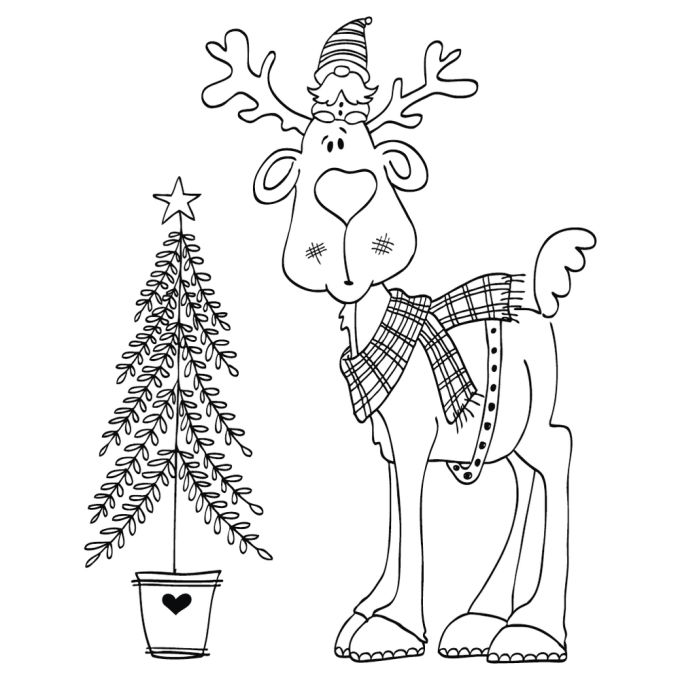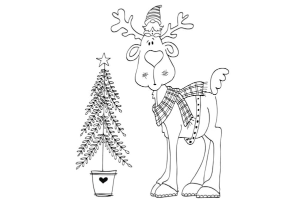 Um lindo alce de inverno com um chapéu engraçado deseja aos seus entes queridos um feliz natal. Cartões, papéis, etiquetas para presentes e muito mais, desenhados pessoalmente trazem alegria á festa de Natal