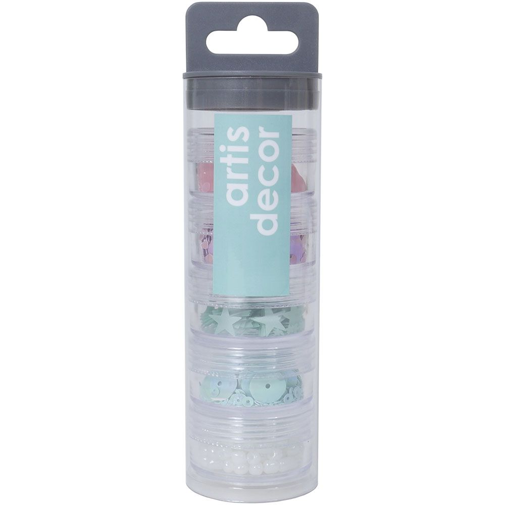 SET 5 CAIXAS DE LANTEJOULAS ROSAS E VERDE ARTIS DECOR