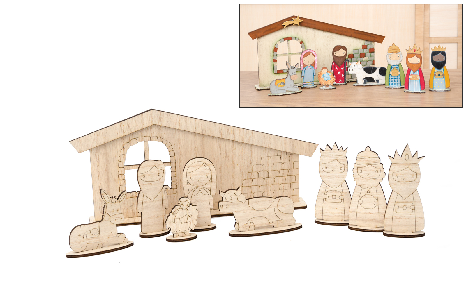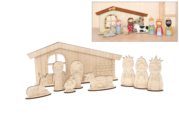 PRESEPIO 6P 7CM C/BASE MDF E ACRILICO 13.5X5.5X0.3CM