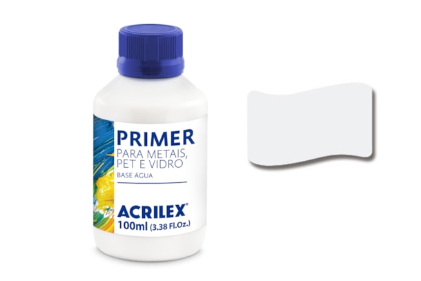 PRIMER P/METAIS 100ML 18910519 ACRILEX. Primer á base de água que confere proteção contra a corrosão em aluminio, ferro e superficies galvanizadas.