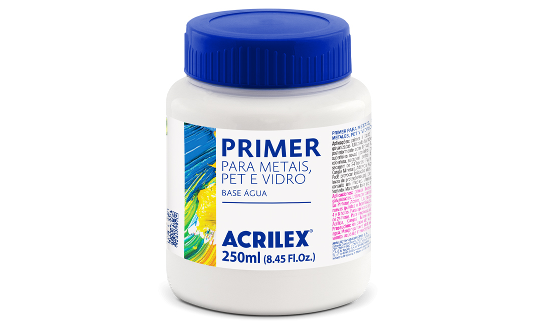 PRIMER P/METAIS 250ML 18925 ACRILEX. Primer á base de água que confere proteção contra a corrosão em aluminio, ferro e superficies galvanizadas.