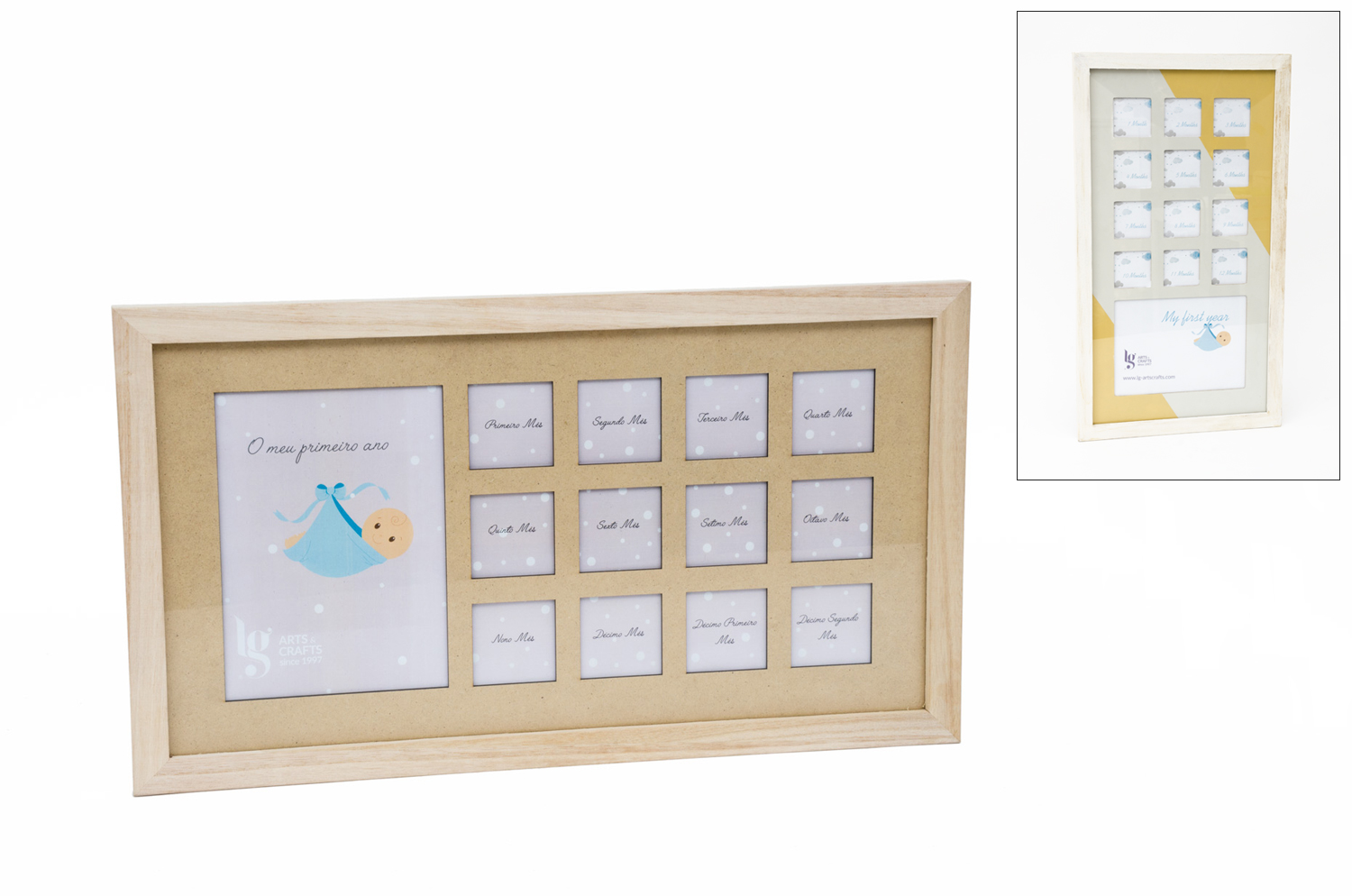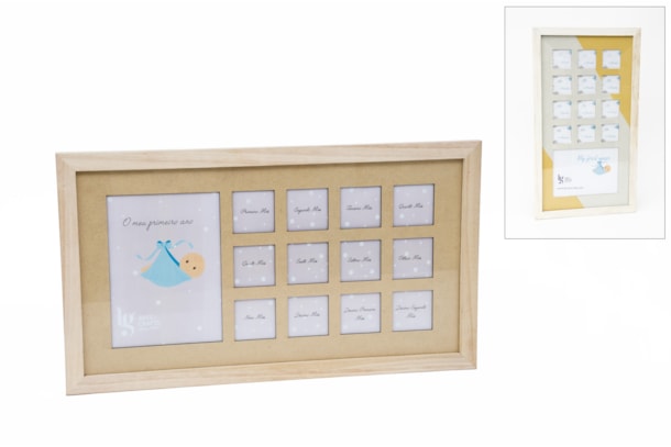 Utilize o porta foto para recordar o 1º ano de nascimento do bébé. Tamanho Fotos pq.: 5x5cm - Foto gr.: 13x18cm