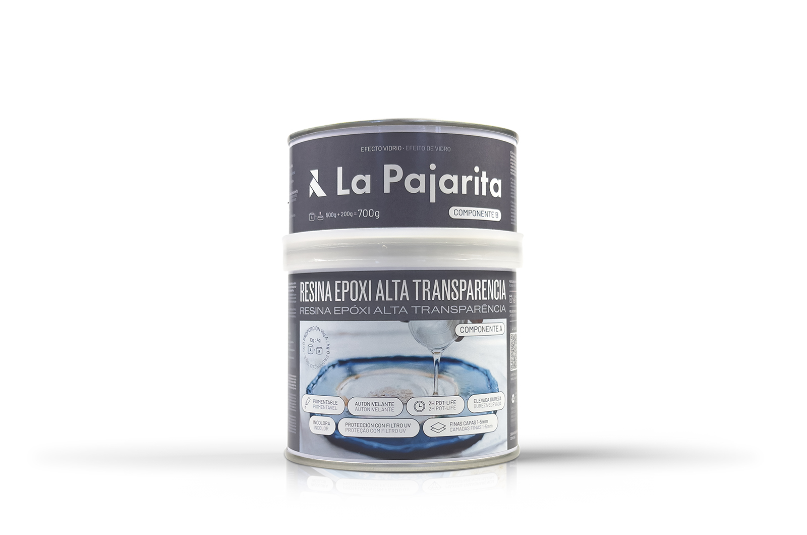 Resina incolor de 2 componentes (A e B) para um acabamento com de efeito vidro altamente duravel. Graças á sua alta transparencia, esta resina pode ser usada em camadas sobre qualquer tipo de movel o objeto. Resiste á humidade e não amarelece.