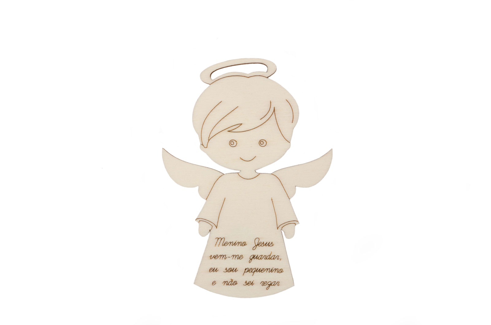 SET 6 ANJOS MENINA C/ ORAÇAO 8.2X10X0.3CM CHOUPO