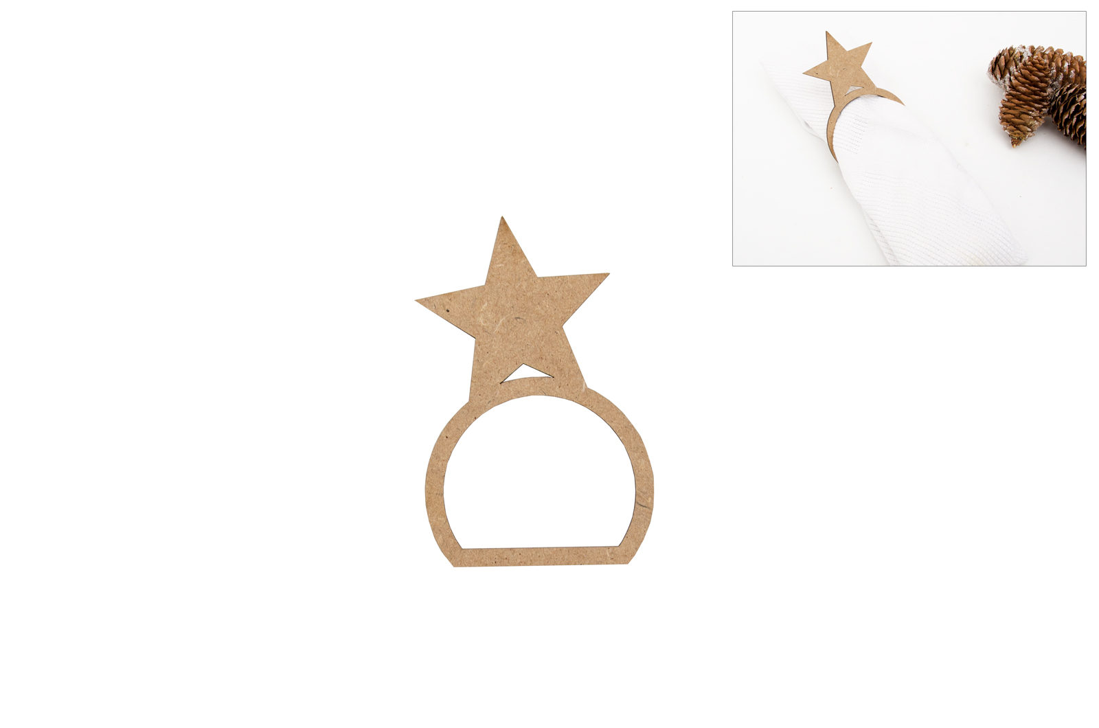 SET 12 ARGOLAS GUARDANAPO COM ESTRELA 6.2X9.2X0.3CM MDF
