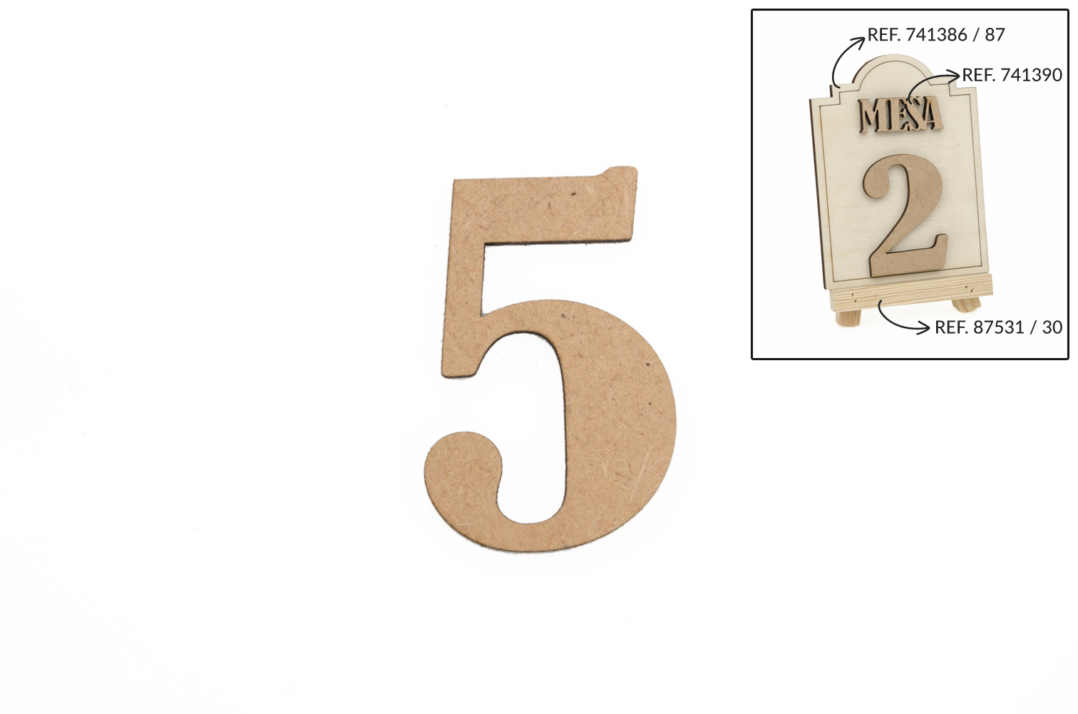 SET 12 NUMEROS 5 5.2X0.3CM MDF