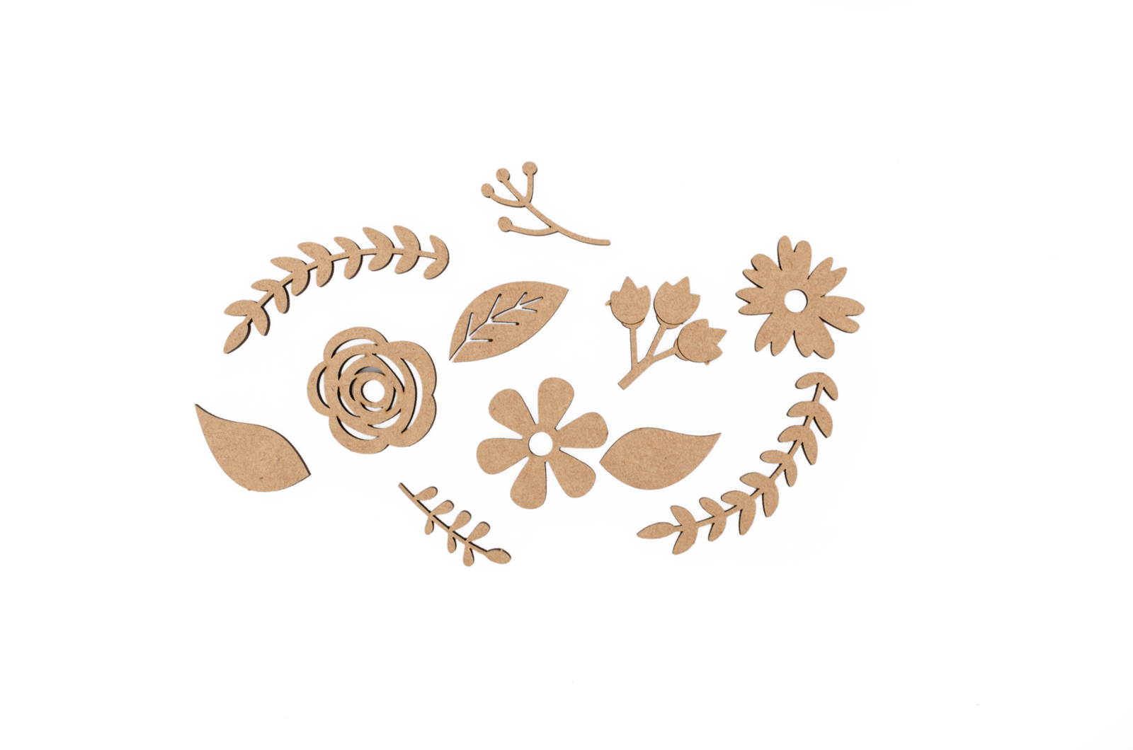 SET 2 KITS FLORES + FOLHAS 4X0.3CM MDF