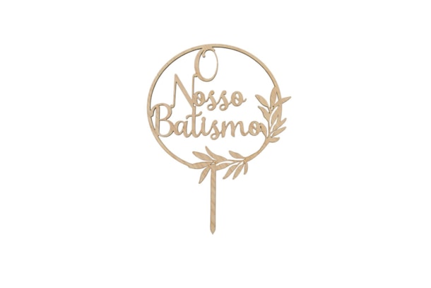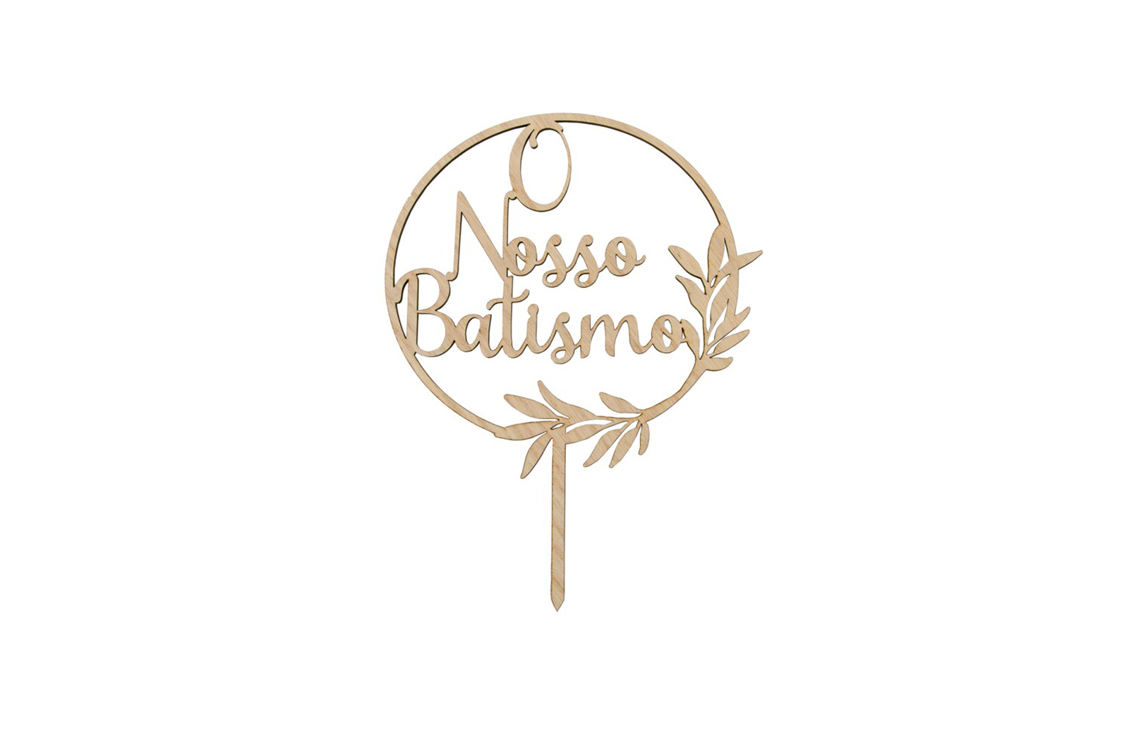 Celebre o batismo com este encantador topo de bolo, decorado com folhagens delicadas e a inscrição "O Nosso Batismo". Um toque único e significativo para tornar o momento ainda mais especial e inesquecível.