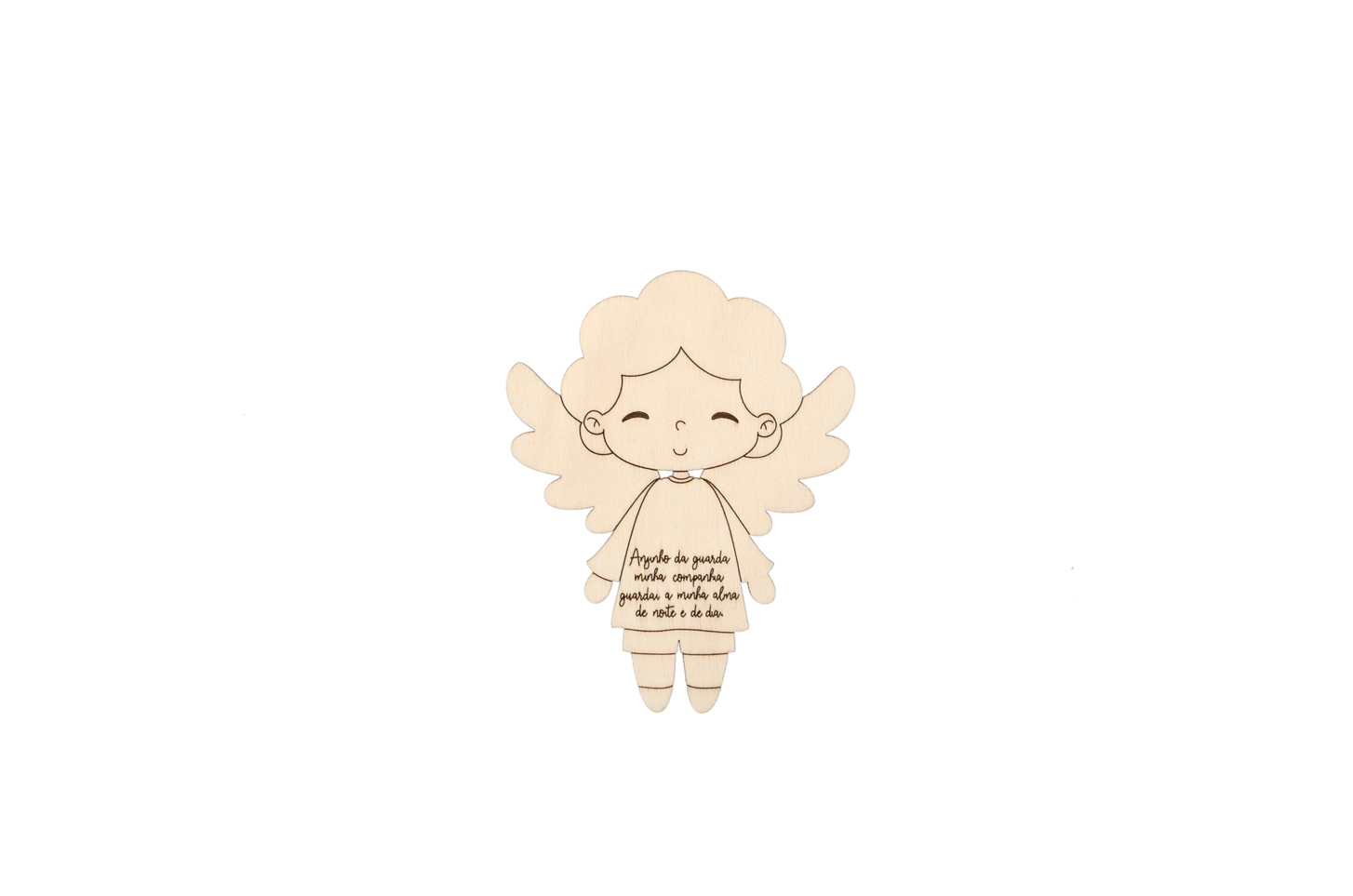 SET 6 ANJOS MENINA C/ ORAÇAO 8.2X10X0.3CM CHOUPO