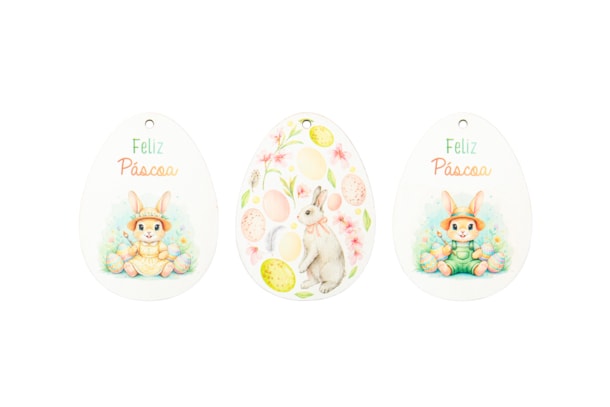 SET 6 ETIQUETAS OVO PÁSCOA 5.2X7X0.3CM MDF BRANCO