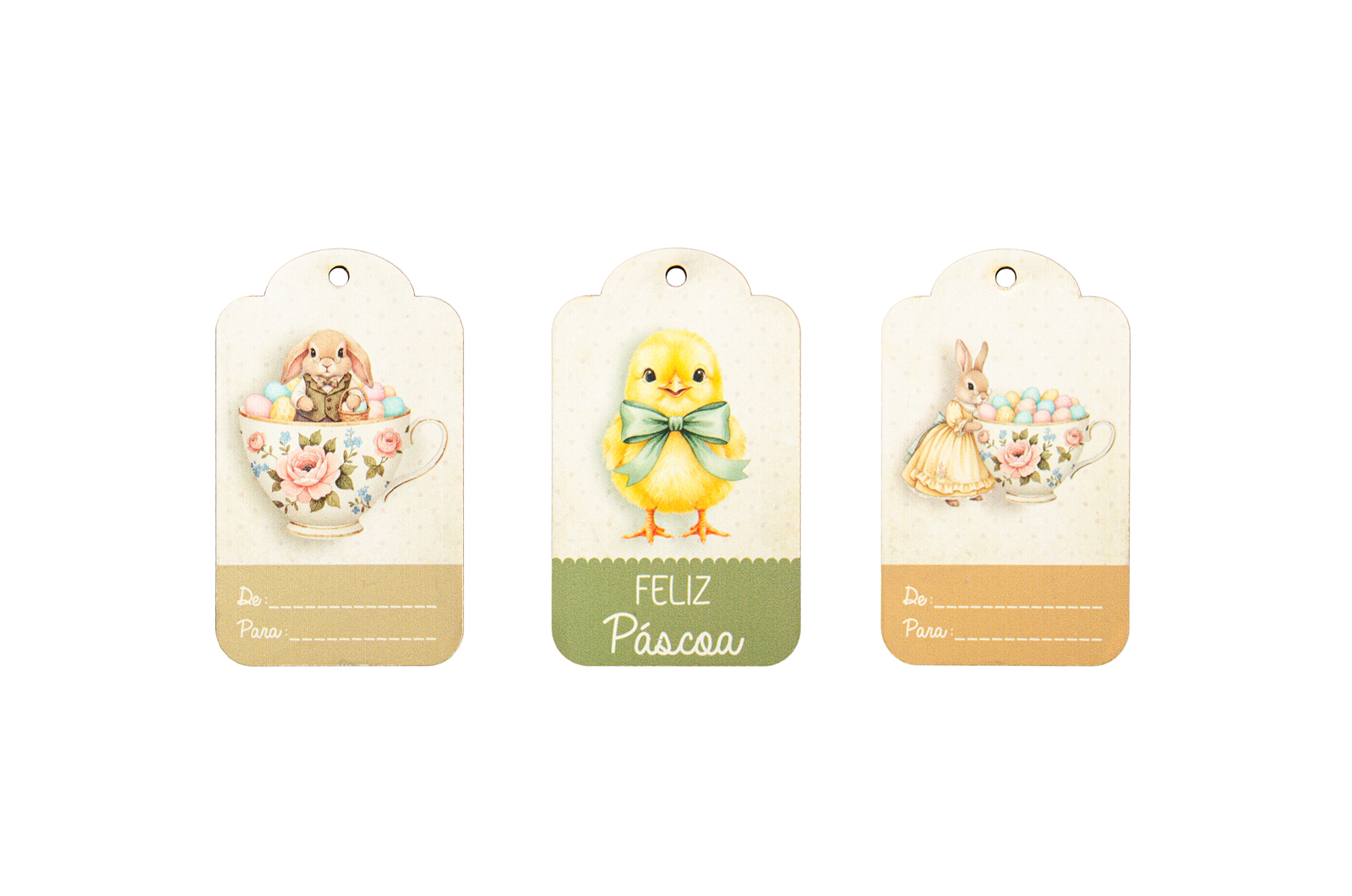 O toque final perfeito para a sua Páscoa! Este conjunto de 6 etiquetas em madeira apresenta ilustrações delicadas e clássicas, ideais para elevar qualquer presente ou projeto criativo.Ótimas para personalizar sacos de amêndoas, folares e cabazes de Páscoa. Graças ao pequeno furo superior, são super fáceis de aplicar em qualquer artigo decorativo.Dê um charme extra e rústico às suas ofertas este ano!