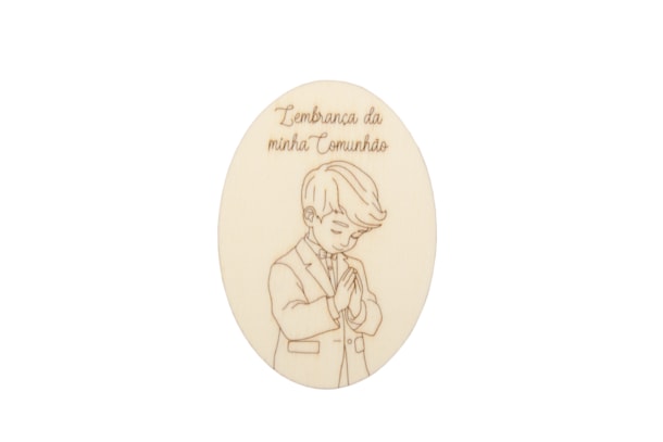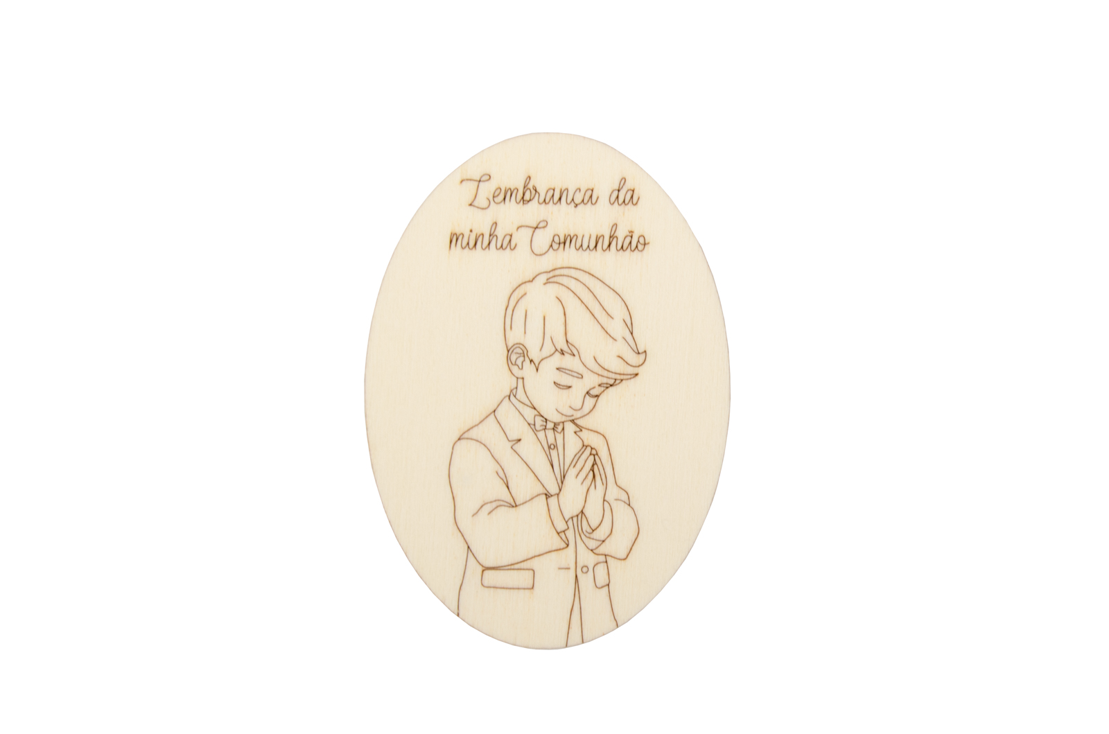 Placa decorativa com um menino gravado e a inscrição "Lembrança da Minha Comunhão". Perfeita para recordar este momento especial ou oferecer como lembrança.