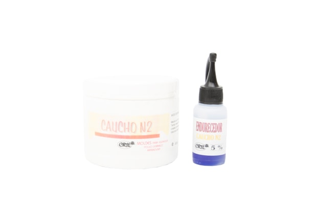 Misturar os 5% endurecedor (25grs) especial para as 500grs de silicone . Tempo medio de endurecimento 10h.