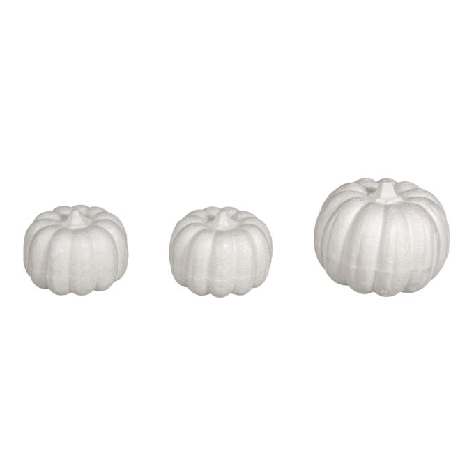 Seja uma decoração de mesa de outono ou uma pequena decoração assustadora para sua festa Helloween, o pequeno grupo de abóboras de poliestireno branco pode ser maravilhosamente transformado.