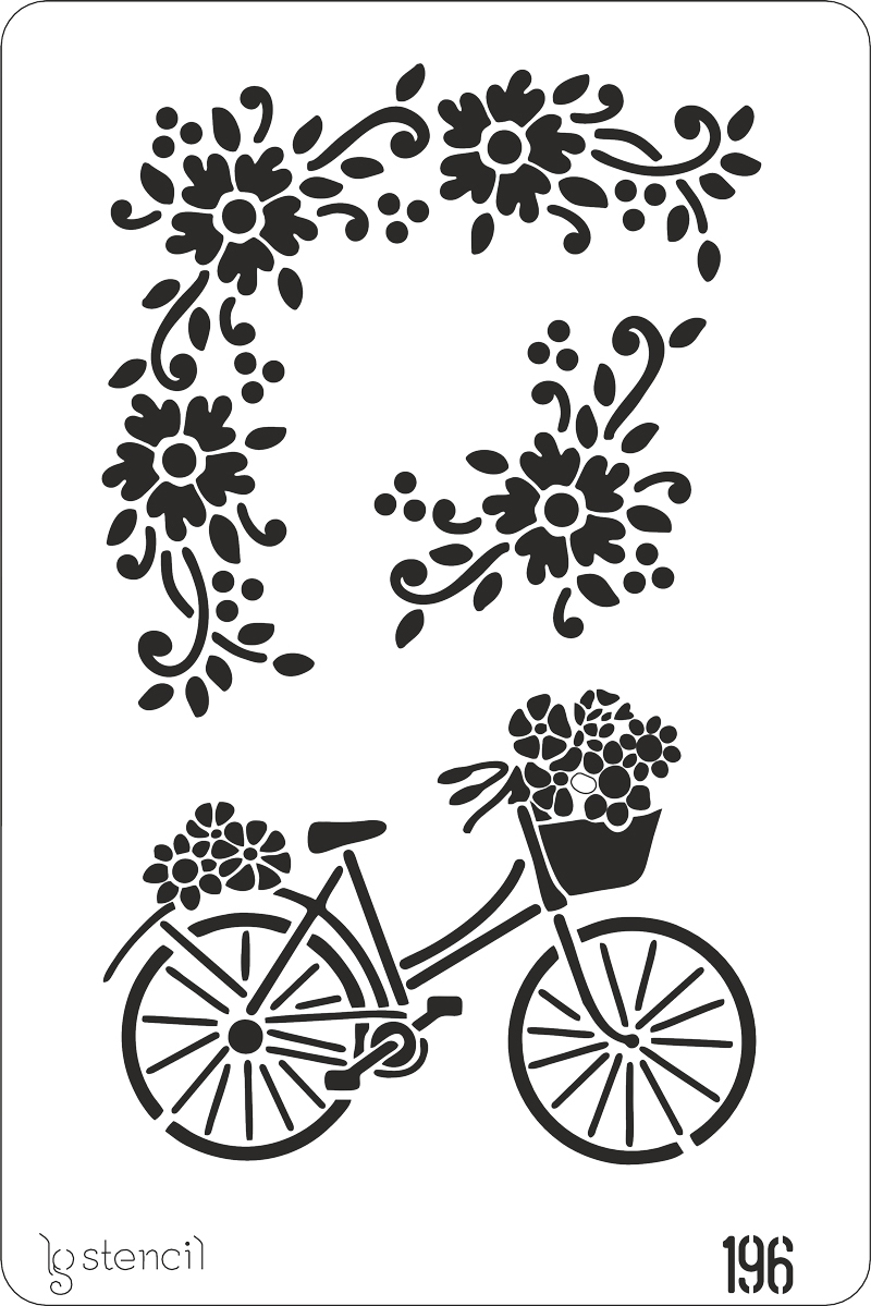 STENCIL 20X30CM 196 BICICLETA COM FLORES