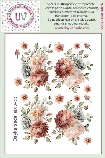 STICKER MULTISUPERFICIE TRANSP. UV-012 11.4X14.3CM FLORES