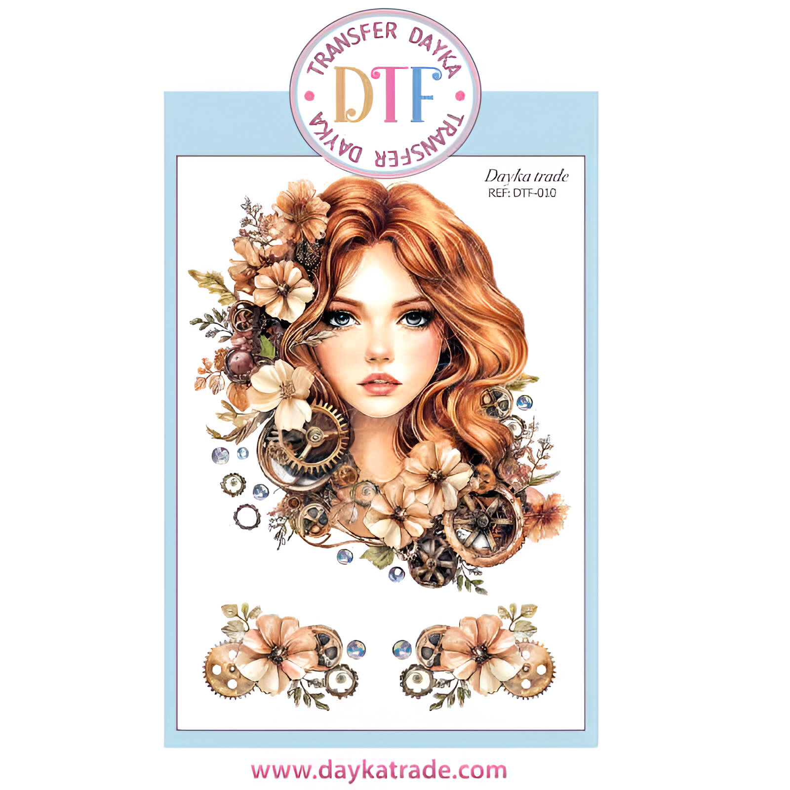 TRANSFER DTF-010P 14.28X19CM DAMA E FLORES