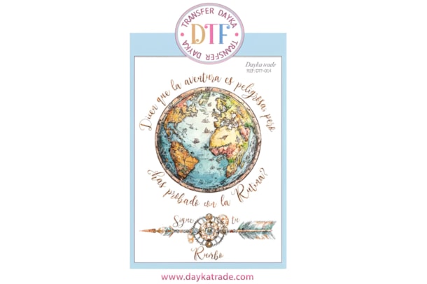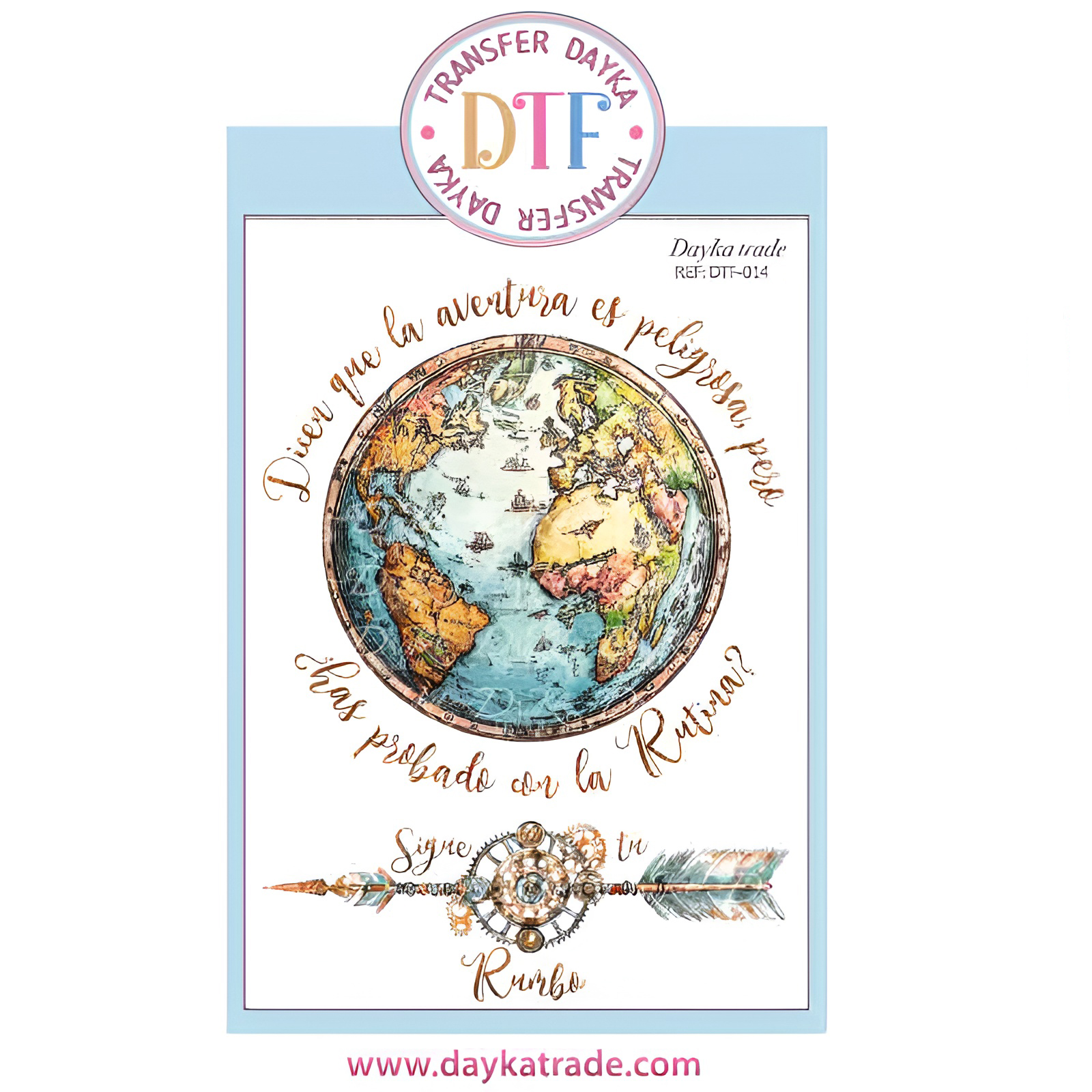 TRANSFER DTF-014G 20X28.5CM MUNDO E FLECHA