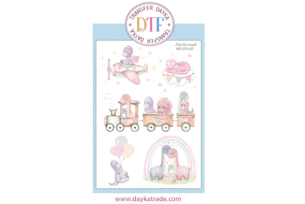 TRANSFER DTF-037G 20X28.5CM DINOSSAUROS BEBE ROSA