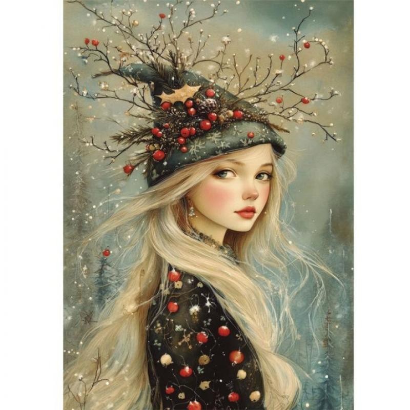 TRANSFER DTF TEXTIL 25X30CM SNOWY FOREST GIRL ARTIS DECOR
