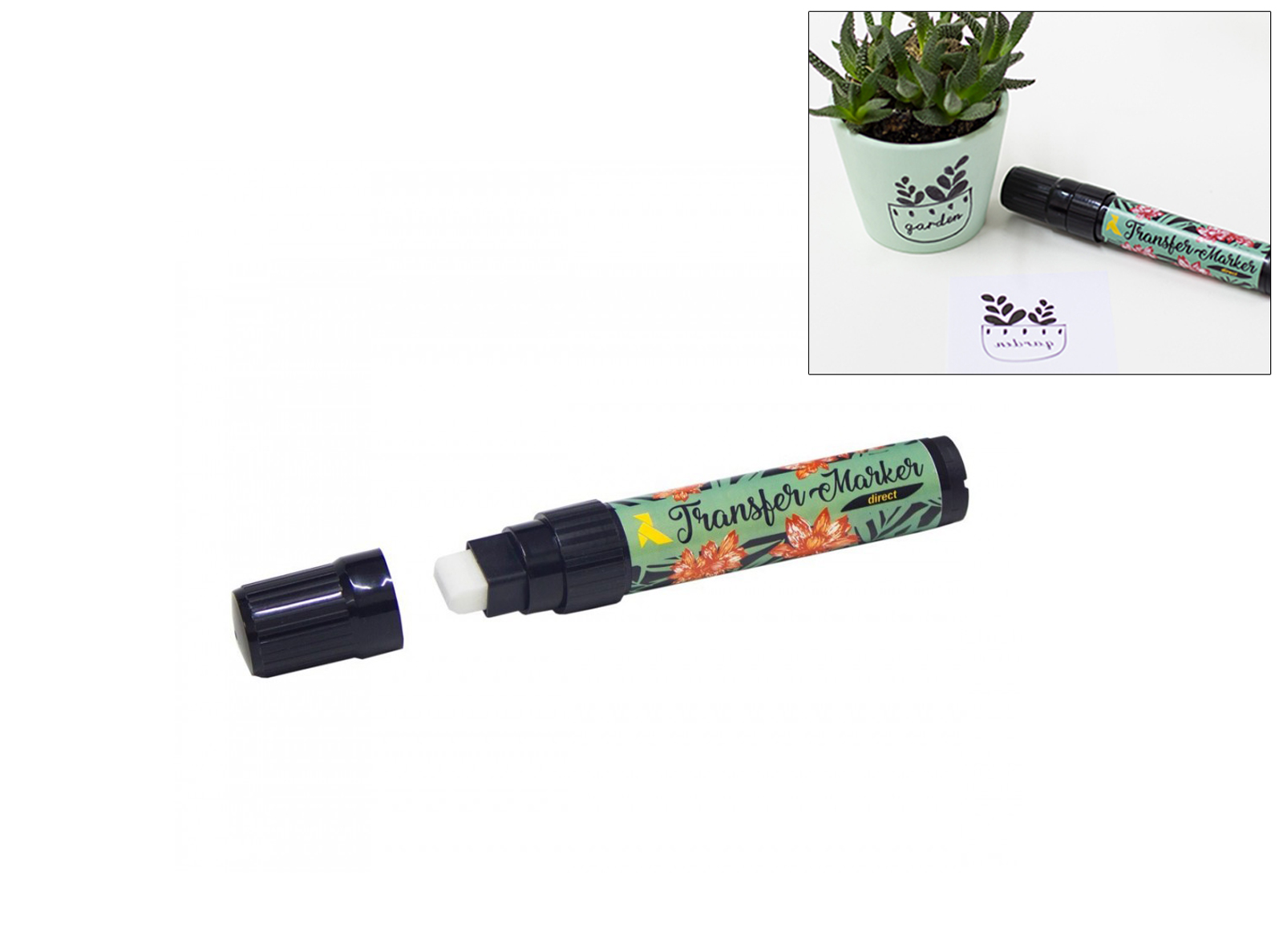 Marcador para transferir todo tipo de imagens impressas a laser sobre superficies porosas como papel, tecido, madeira, couro, chacota, etc. Com o marcador transfer é muito facil e rapido transferir impressoes sobre todo o tipo de superficies porosas. Utilizar uma imagem ou fotografia impressa a laser, e se contem textos, sempre com efeito espelho.