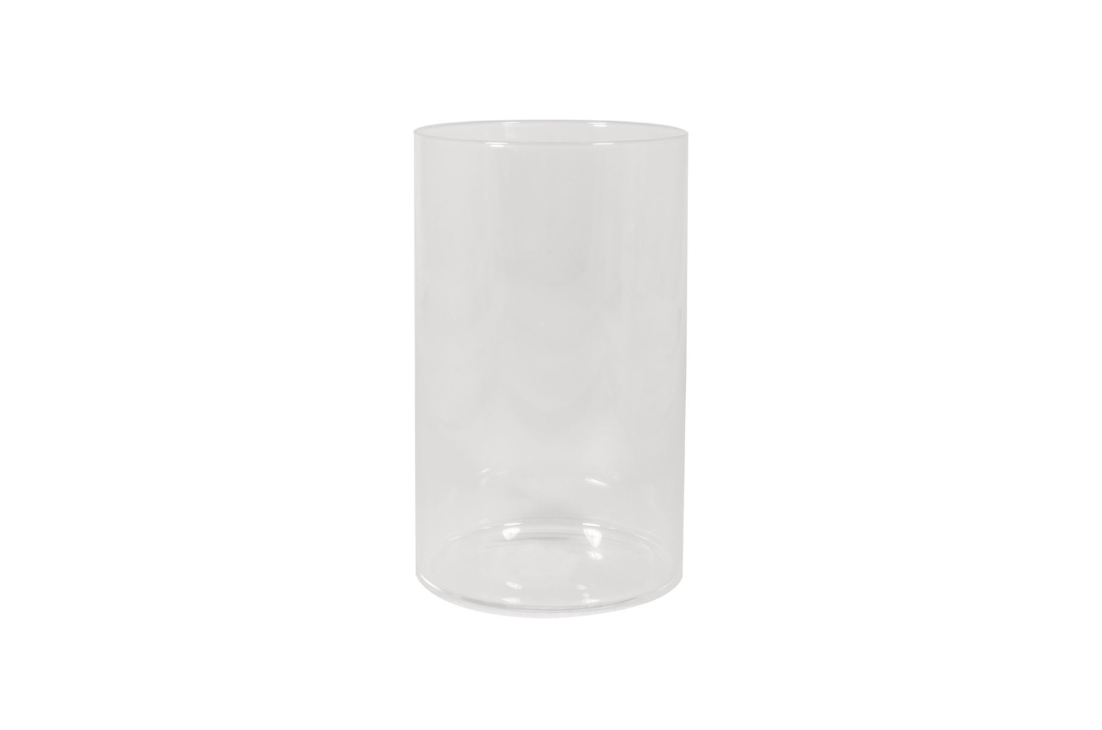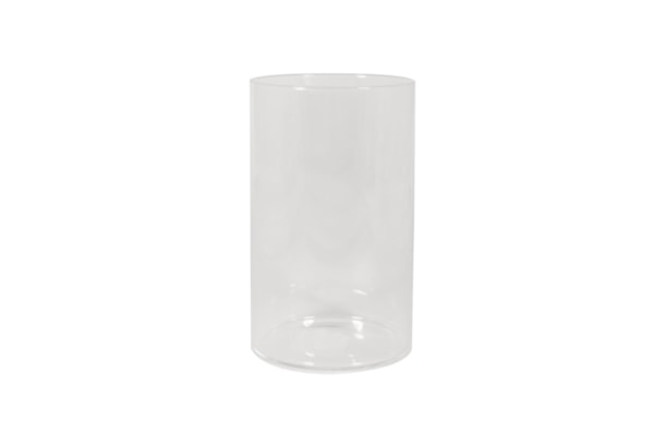 Vaso de vidro, 18 cm de altura, 11 cm de diâmetro.
